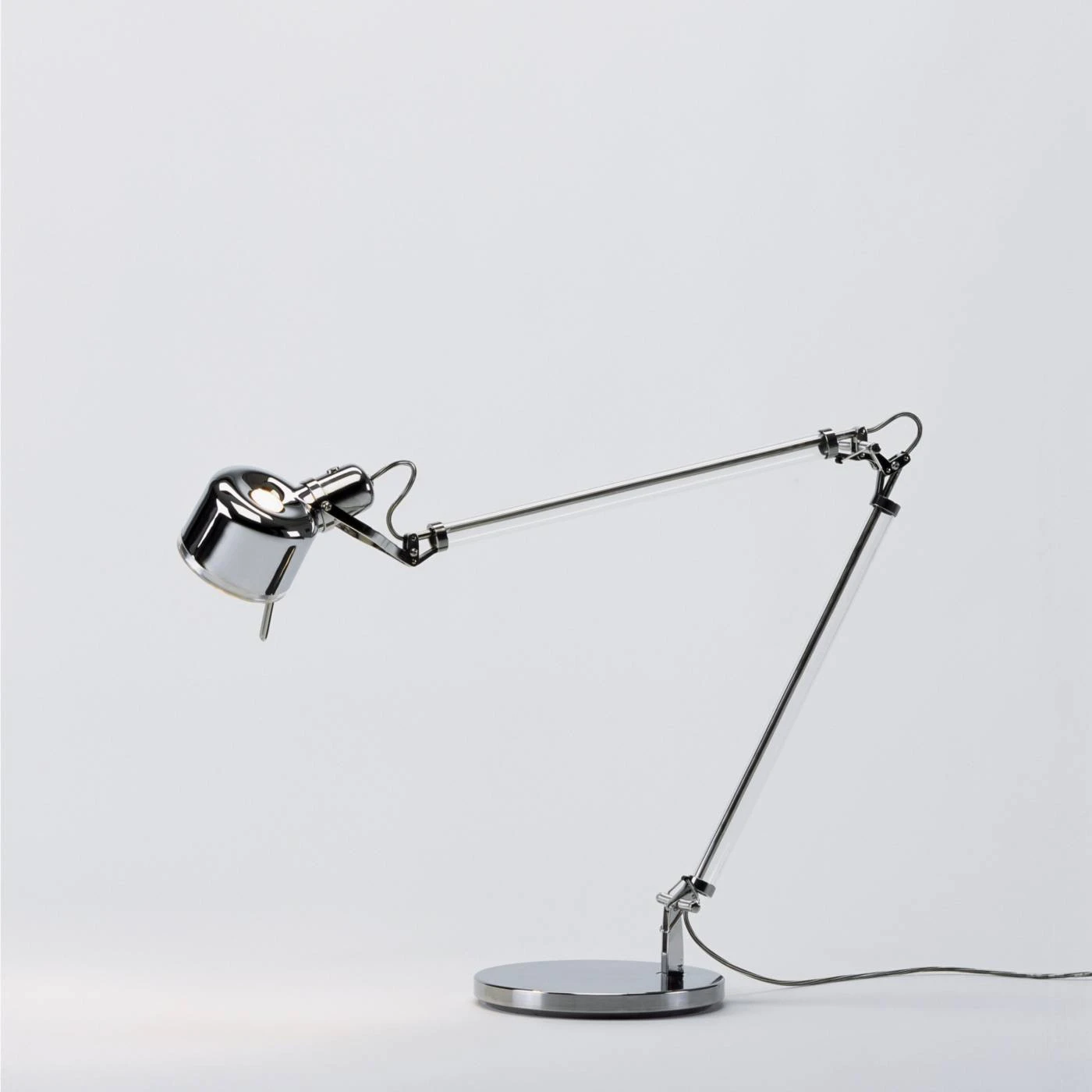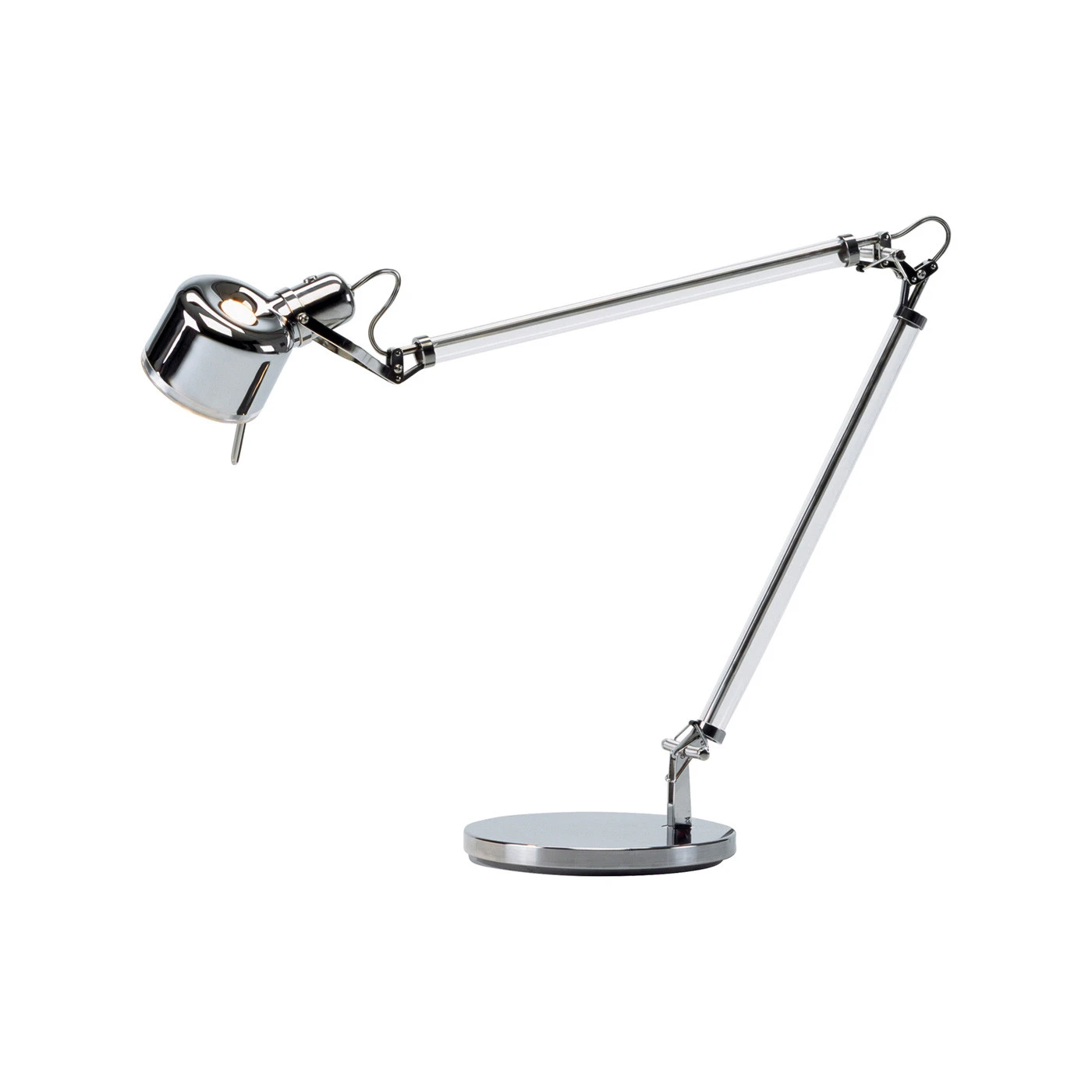 | Abmessungen | Durchmesser Fuß 23,5 cm, Durchmesser Leuchtenkopf 11 cm, Armlänge 45 + 45 cm. |